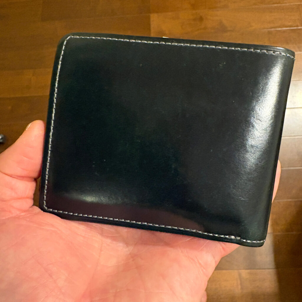 現在の相棒は、ココマイスター・ヨコハマ 二つ折り財布(クリアネイビー)。購入から5年が経過した今も、現役で毎日使い続けている。エイジングによって深みを増したコードバンの表情は、買ったばかりのころとは別物だ——これが「一生モノ」の革製品を選ぶ意味だと、使い込む中で確信した。